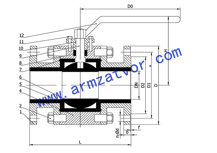 Чертеж крана шарового с керамическим уплотнением